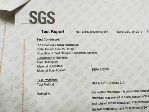 | Chemical resistance | SEFA3-2010 |